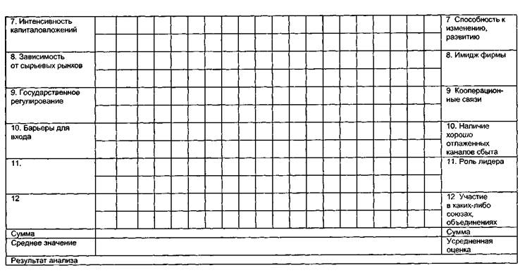 Таблица 6.5. Критерии оценки положения фирмы в конкурентной среде