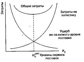 Рис. 6.21.Характер зависимости между затратами на логистику и сервисом поставок товаров Таблица 6.8. Доля затрат на логистику в отдельных отраслях экономики