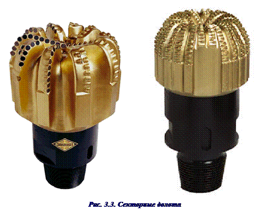 Породоразрушающий инструментDate: 2015-10-07; view: 415. Породоразрушающий инструмент (ПРИ) предназначен для разрушения горной породы на забое при бурении скважины. По принципу разрушения породы ПРИ подразделяется на 3 группы: 1) ПРИ режуще-скалывающего действия – применяется для разбуривания вязких, пластичных и малоабразивных пород небольшой твердости; 2) ПРИ дробяще-скалывающего действия – применяется для разбуривания неабразивных и абразивных пород средней твердости, твердых, крепких и очень крепких; 3) ПРИ истирающе-режущего действия – применяется для бурения в породах средней твердости, а также при чередовании высокопластичных маловязких пород с породами средней твердости и даже твердыми. По назначению ПРИ подразделяется: 1) Для бурения сплошным забоем (без отбора керна) – буровые долота; 2) Для бурения по кольцевому забою (с отбором керна) – бурголовки; 3) Для специальных работ в пробуренной скважине (выравнивание и расширение ствола) и в обсадной колонне (разбуривание цементного камня и т.д.) По конструктивному исполнению ПРИ делится на три группы: 1) Лопастной (рис. 3.1.); 2) Шарошечный (рис. 3.2.); 3) Секторный (рис.3.3.);