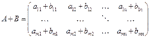 Суммой матриц одного размера называется матрица, элементы которой равны суммам соответствующих элементов матриц-слагаемых: