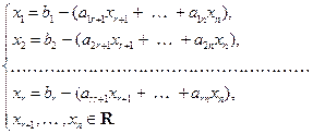 Решение системы, которое получается из общего, если свободным переменным придать конкретные числовые значения, называется частным решением системы. Итак, если положить, что Вычисление коэффициентов системы, которая получается после исключения какой-то переменной из всех уравнений, кроме одного, можно производить по определенному правилу, которое получило название правила Жордана – Гаусса. Правило Жордана – Гаусса исключения переменной