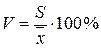 Для характеристики колеблемости признака Х используют относительный показатель — коэффициент вариации V, который вычисляют по формуле