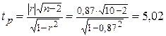 Проверяем тесноту связи между признаками и . Воспользуемся критерием Стьюдента. Вычисляем статистику