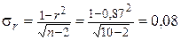 7. Провести оценку величины погрешности уравнения регрессии на и его коэффициентов.