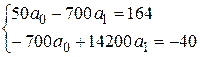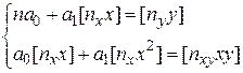 Применим метод наименьших квадратов к нахождению коэффициентов и уравнения линейной регрессии . Решаем систему нормальных уравнений (45):