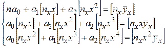 Оценка , , для неизвестных параметров истинного уравнения регрессии находят по методу наименьших квадратов. Если опытные данные не сгруппированы в корреляционную, то оценки находят, решая систему нормальных уравнений