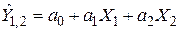 Рассмотрим случай построения многофакторной модели, когда результативный признак зависит от двух факторных признаков и . Если зависимость между ними носит линейный характер, то уравнение регрессии записывают в виде