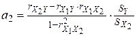 Здесь , , — коэффициенты парной корреляции между признаками и , и , и ; , , — средние квадратические отклонения; , , — средние признаков , , .