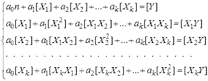 Коэффициенты уравнения регрессии (90) , , находят по методу наименьших квадратов, решая систему нормальных уравнений