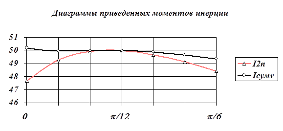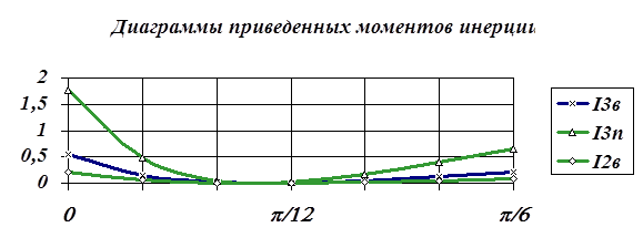 Графики переменной части суммарного приведенного момента инерции даны на рис. 7.13 и 7.14. Кроме того, имеется и постоянная часть Iпрåc, определяемая массой и моментом инерции звена 1