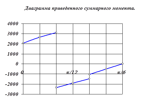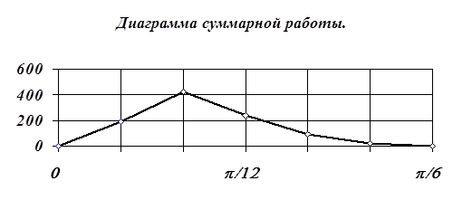 2. Определение суммарной работы внешних сил. Суммарную работу внешних сил получим интегрированием суммарного приведенного момента Мпрå по обобщенной координате dj1 p./6 Aåм = ò Мпрå × dj1 . 0 Интегрирование можно проводить различными методами. Воспользуемся методом графического интегрирования. При этом методе участок изменения обобщенной координаты, на котором проводится интегрирование, разбирается на несколько малых частей (в нашем примере 6). В пределах каждого i -го участка кривая Мпрå = f (j1) заменяется прямой, соответствующей среднеинтегральному значению Мпрåi на этом участке. На продолжении оси абсцисс, влево от начала координат откладываем отрезок интегрирования k1 . Ординаты среднеинтегральных значений Мпрåi проецируем на ось ординат. Точки пересечения проецирующих линий с осью ординат соединяем прямыми с концом отрезка интегрирования. На диаграмме работы из начала первого участка (и до его конца) под углом y1 к оси абсцисс проводим прямую. Для второго участка аналогичная прямая проводится под углом y2. Ее начало выбирается в точке пересечения предыдущего отрезка прямой с вертикалью проходящей начало второго участка. Проведя построения для всего интервала интегрирования, получим график работы. Масштаб этого графика определим из подобия треугольников