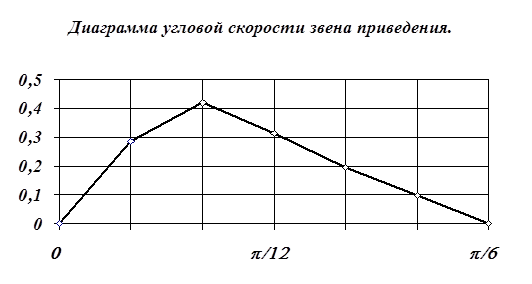 3. Определение угловой скорости звена приведения Определение закона движения звена приведения в виде диаграммы изменения угловой скорости в функции обобщенной координаты w1= f(j1) проводится по формуле