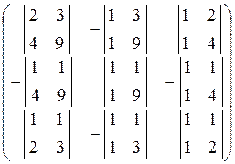 Метод обратной матрицыDate: 2015-10-07; view: 410. Пусть число уравнений системы равно числу переменных: т = п.Тогда матрица системы является квадратной. Ее определитель D(А) называется определителем системы. Для получения решения системы линейных уравнений при т = п в общем виде предположим, что квадратная матрица системы А невырожденная: ее определитель D(А) ≠ 0. В этом случае существует обратная матрица А-1. Умножим обе части матричного равенства А Х = В на матрицу А-1 слева. В результате получим такие соотношения: А–1 (АХ) = А–1В; А–1 (АХ) = (А–1А) Х = ЕХ = Х. Следовательно, решением системы линейных уравнений методом обратной матрицы является матрица-столбец, равная произведению обратной матрицы А-1 и матрицы свободных членов В: Х = А–1 В. Отыскание решения системы по данной формуле называют матричным методом решения системы. Пример 1. Решить систему линейных уравнений матричным методом