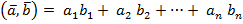 Скалярное произведение 2-х векторов , имеющих одинаковую размерность, определяется как сумма произведений соответствующих компонент. Обозначается : ( )