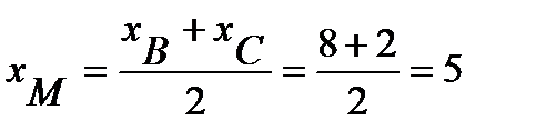 3) Предварительно найдем координаты середины М отрезка ВС: , . По известным двум точкам составляем уравнение прямой АМ: