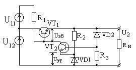 Введение токостабилизирующего звена в выходной цепи УПТ, при этом исключается влияние изменений входного напряжения на выходной ток усилителя.